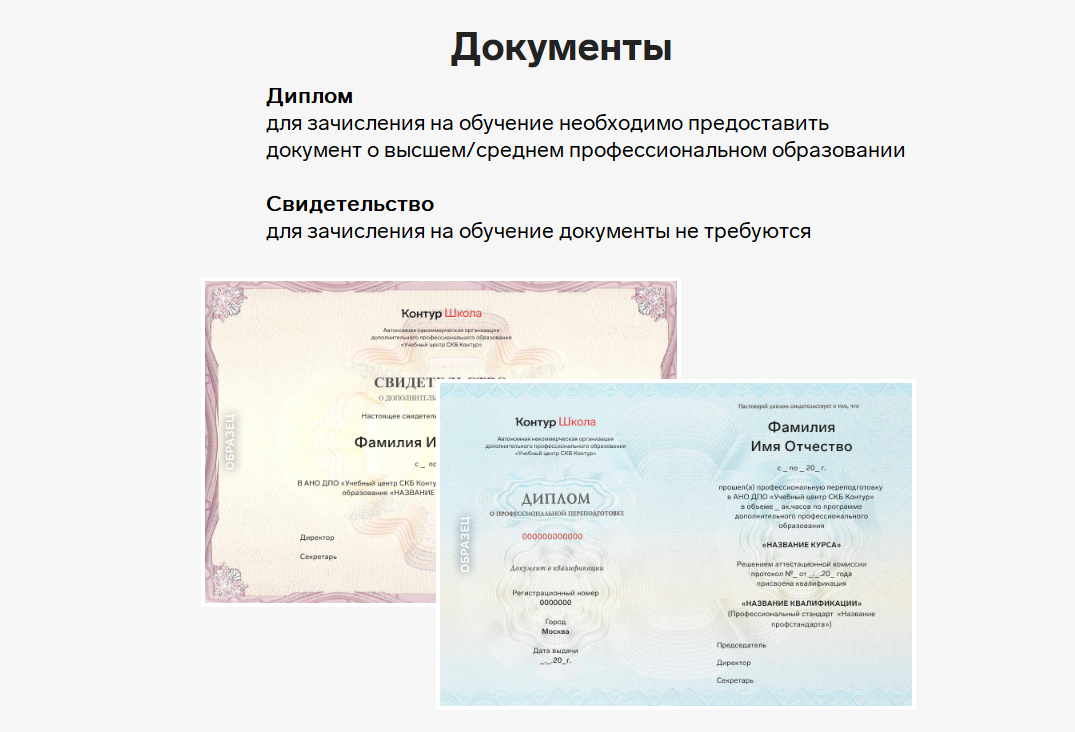 Большинство онлайн-курсов в Контур.Школе являются курсами повышения квалификации или профпереподготовки (ДПО).